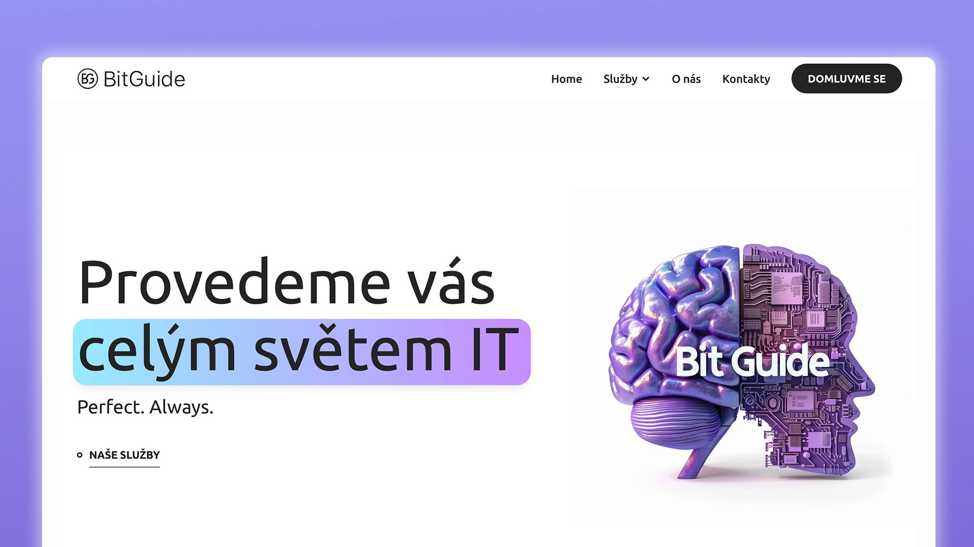 BitGuide je tým špičkových IT expertů, ale jejich původní webová prezentace byla příliš stručná, graficky zastaralá a neodrážela hloubku jejich know-how. Navrhl a vytvořil jsem proto zbrusu nový, rozsáhlý web s moderním designem, který přehledně komunikuje široké spektrum jejich služeb.