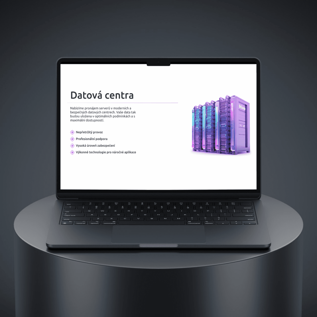 Jako řešení jsem zvolil vizuální identitu postavenou na moderních 3D ilustracích a "tech" gradientech, které evokují inovaci a budoucnost. Místo dlouhých textových bloků jsem služby rozdělil do přehledných interaktivních karet, které návštěvníka intuitivně vedou nabídkou. Výsledkem je web, který působí sebevědomě a světově, a který dokazuje, že odhodlání a schopnost učit se jsou pro designera stejně důležité jako technické dovednosti.
